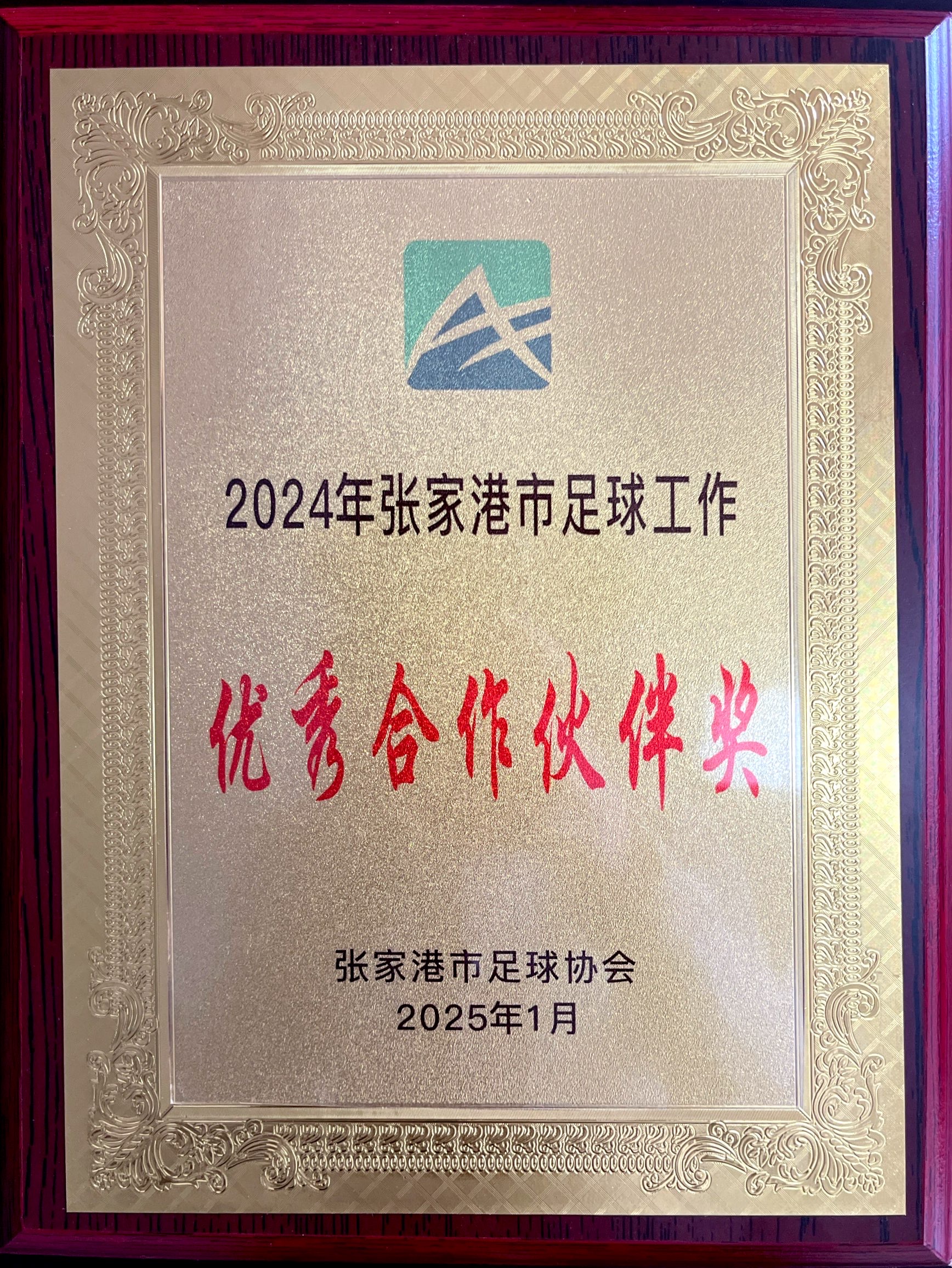 2025年1月23日,2025年張家港市足球工作會議暨市足球協(xié)會年度總結(jié)大會召開,公司獲得“2024年張家港市足球工作優(yōu)秀合作伙伴獎”榮譽(yù)稱號。