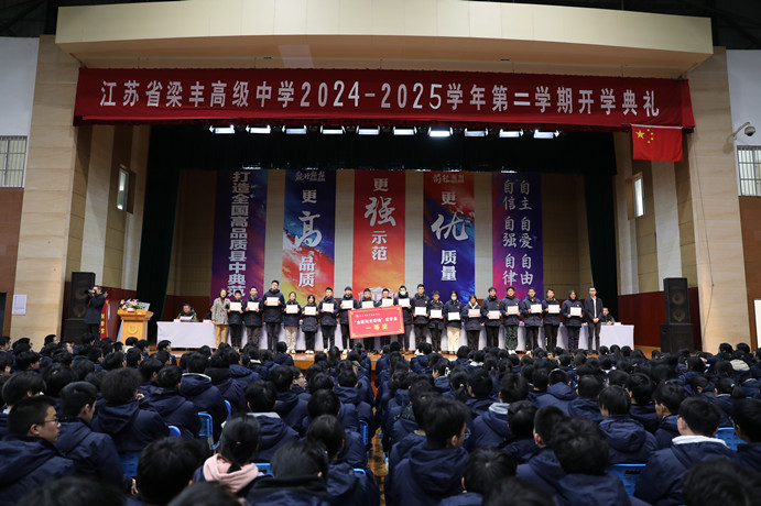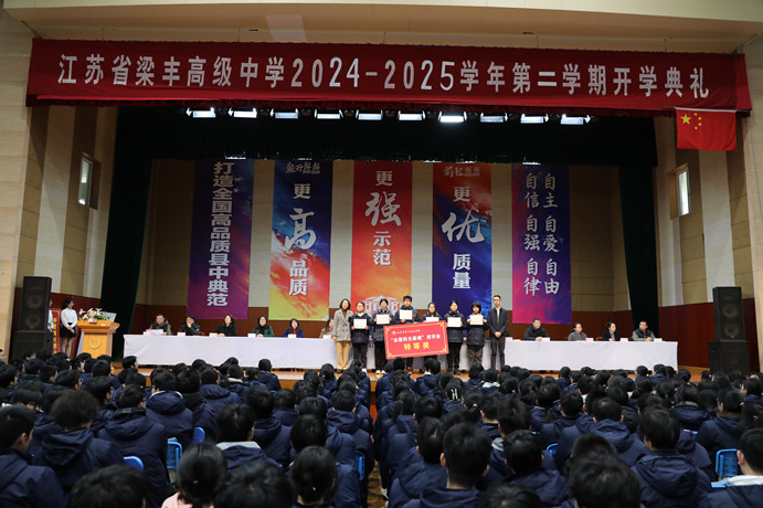 2月13日,江蘇省梁豐高級中學舉行新學期開學典禮暨金廈?陽光春曉獎學金頒獎儀式。